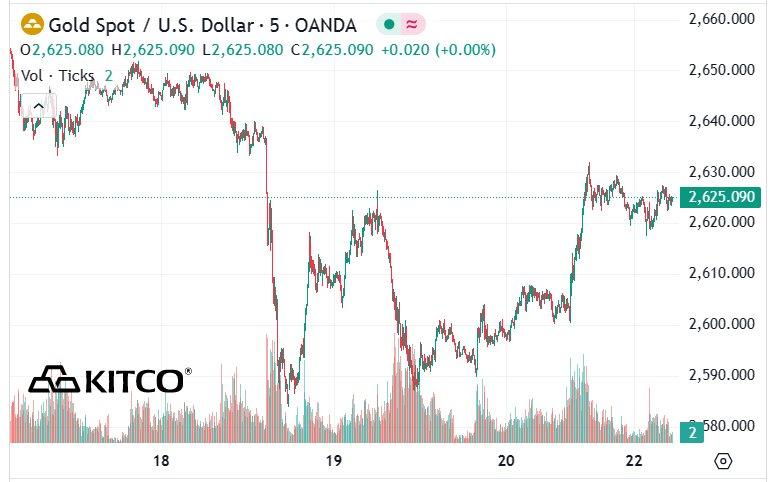 Trên thị trường vàng quốc tế, giá vàng thế giới trong sáng nay bật tăng lên mức 2.625,9 USD/ounce. Nếu quy đổi theo tỷ giá Vietcombank, chưa bao gồm thuế, phí, giá vàng thế giới hiện có giá trị 80,8 triệu đồng/lượng, thấp hơn giá vàng trong nước khoảng 3,5 triệu đồng/lượng.