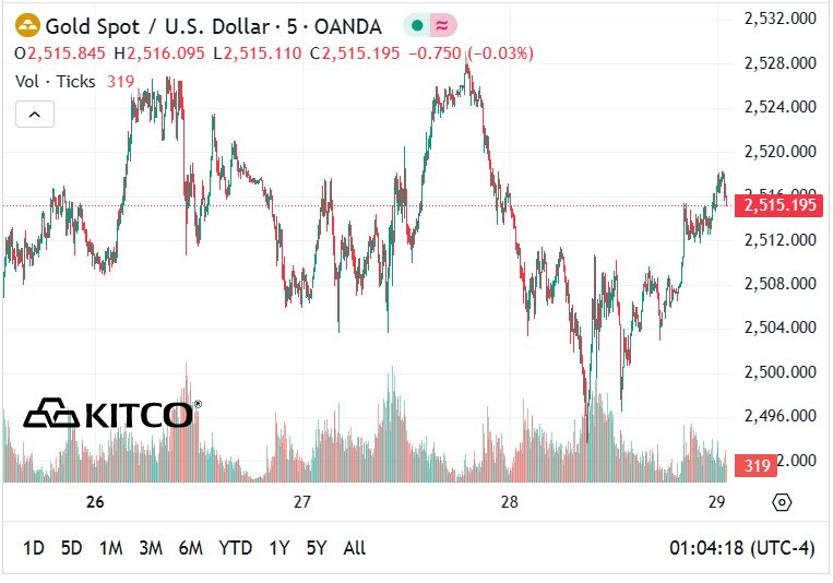 Trên thị trường quốc tế, giá vàng thế giới giao dịch quanh vùng 2.515 USD/ounce, tăng 2,1 USD/ounce so với cùng thời điểm ở phiên giao dịch trước. Nếu quy đổi theo tỷ giá Vietcombank, chưa bao gồm thuế, phí, giá vàng thế giới hiện có giá trị gần 76,7 triệu đồng/lượng, thấp hơn giá vàng trong nước khoảng 4,3 triệu đồng/lượng.