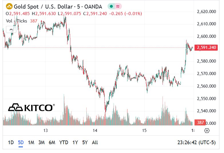 Trên thị trường vàng quốc tế, giá vàng thế giới hiện giao dịch quanh vùng 2.592,3 USD/ounce. Nếu quy đổi theo tỷ giá Vietcombank, chưa bao gồm thuế, phí, giá vàng thế giới hiện có giá trị 79 triệu đồng/lượng, thấp hơn giá vàng trong nước khoảng 4,5 triệu đồng/lượng.